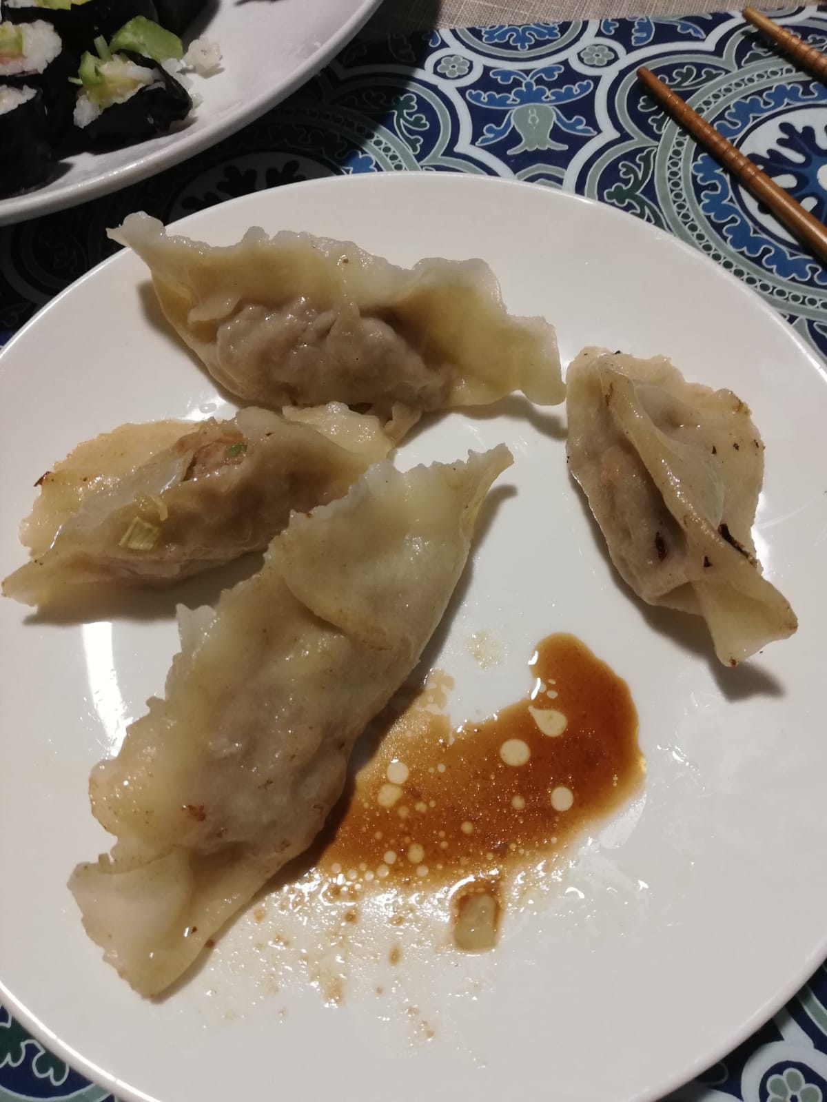 Impressió general: Ens vam barallar amb la massa força estona, les jiaozi ens van sortir una mica lletges, però de gust, bonissimes!! I ara en tenim el congelador ple! (més d'1kg). Ens va sobrar farciment amb la massa que vam fer, per tant vam agafar obleas de fer rollitos de primavera i en vam fer uns quants amb la massa sobrant. També queden deliciosos!